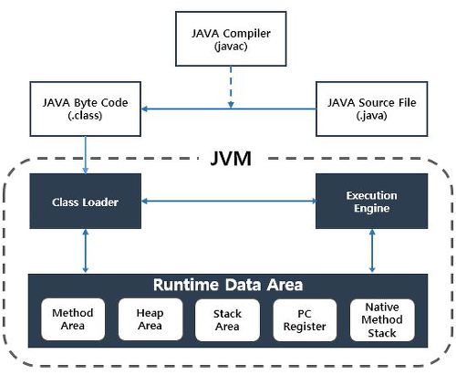 - Java언어로 프로그래밍된 파일을 Java컴파일러가 가상 기계어 파일인 Java클래스 파일로 만든다. 다시 말해, 소스 코드를 Java바이트 코드로 번역한다. 이후 Java바이트 코드를 JVM이 읽고 실행하게 된다.