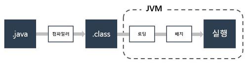 - JRE는 자바 API와 JVM으로 구성되며, JVM의 역할은 자바 애플리케이션을 클래스 로더를 통해 읽어 들여서 자바 API와 함께 실행하는 것임.