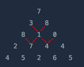 DP[i][j] = Math.max(DP[i - 1][j], DP[i - 1][j - 1]) + triangle[i][j];